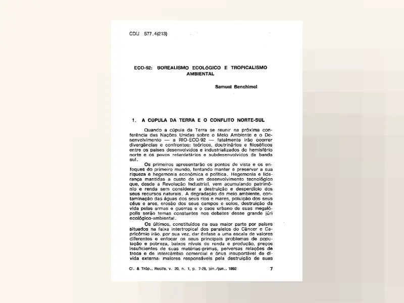 Lançamento do artigo “Amazônia e a Eco-92”, no Simpósio sobre a Amazônia em Belém.