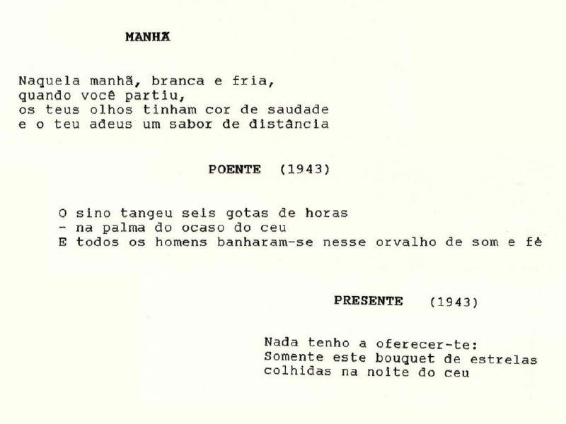 Composição de Versos dos Verdes Anos (1942-1945). Poemas e haikais escritos no período de 1942-1945, até hoje discretamente divulgados.